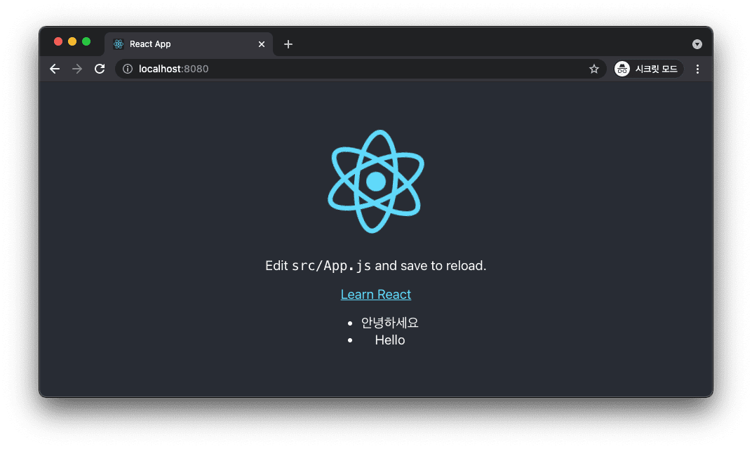npx를 사용해 React 프로젝트를 만들게 되면 최종적으로 아래와 같은 화면을 확인할 수 있습니다.
