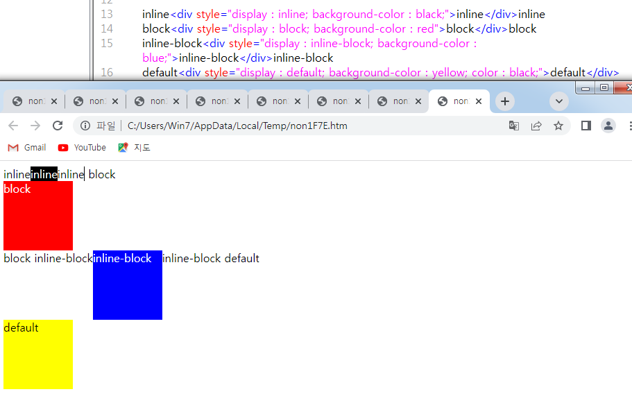 3. inline 은 자신의 크기를 유지하며, 한 행에서 다른 글자와 같이 있는다.